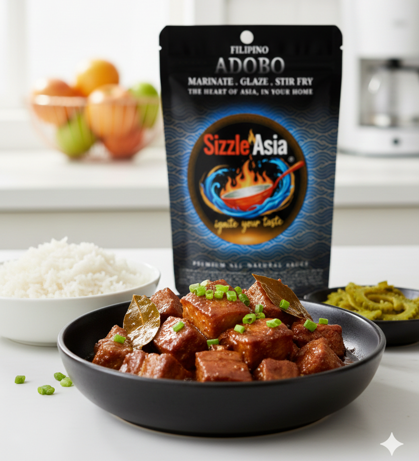 SizzleAsia Filipino Adobo delivers rich, savoury flavour with soy sauce, tangy vinegar, and garlic—bringing authentic Filipino taste to everyday meals with ease.
